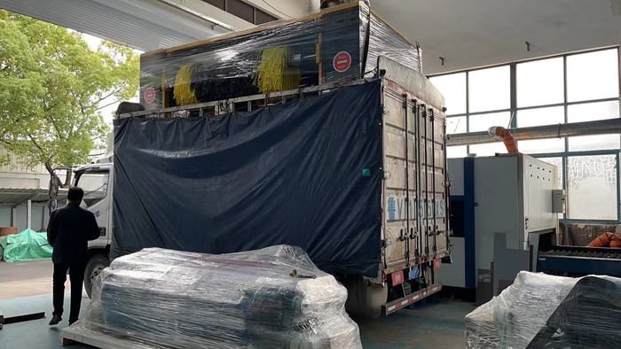 沙特客戶增購2臺無接觸洗車機,正在裝柜